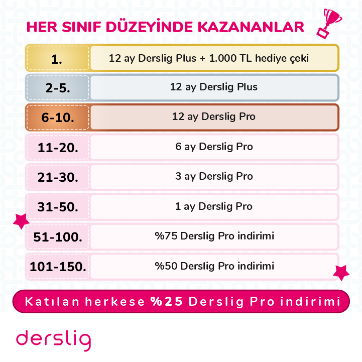 • 19 Nisan Pazar: Derslig denemesi ile gerçek sınav simülasyonu.
