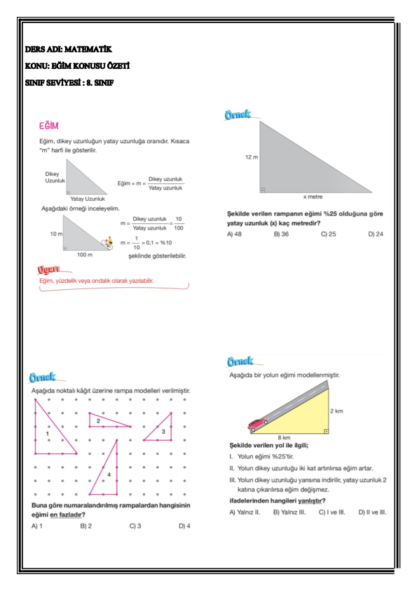 K8M17 Eğim Kazanım Kavrama Kağıdı