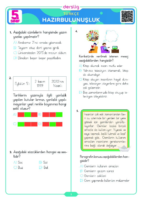 5. Sınıf Hazırbulunuşluk Sınavı-1