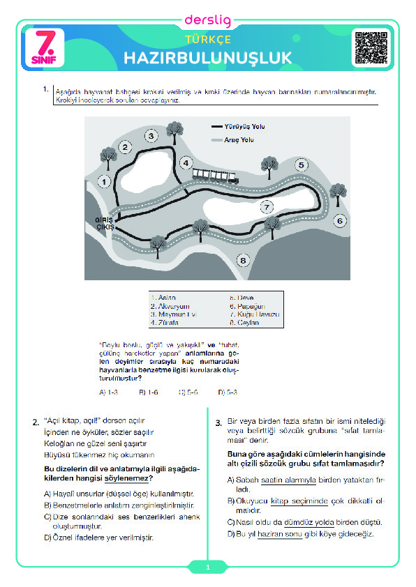 6. sınıftan 7. sınıfa Geçenler için Türkçe Telafi Kitapçığı