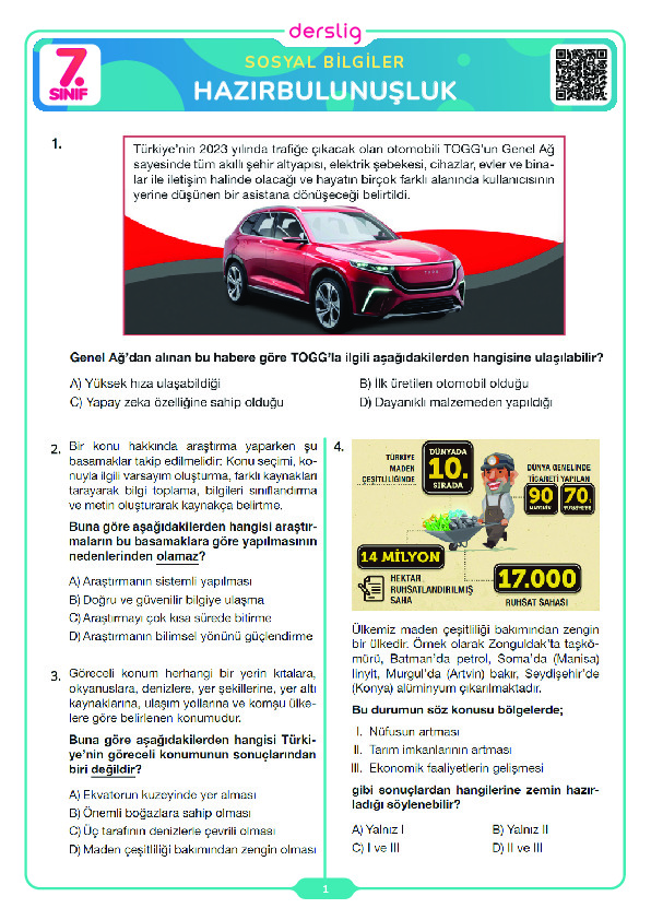 6. sınıftan 7. sınıfa Geçenler için Sosyal Bilgiler Telafi Kitapçığı