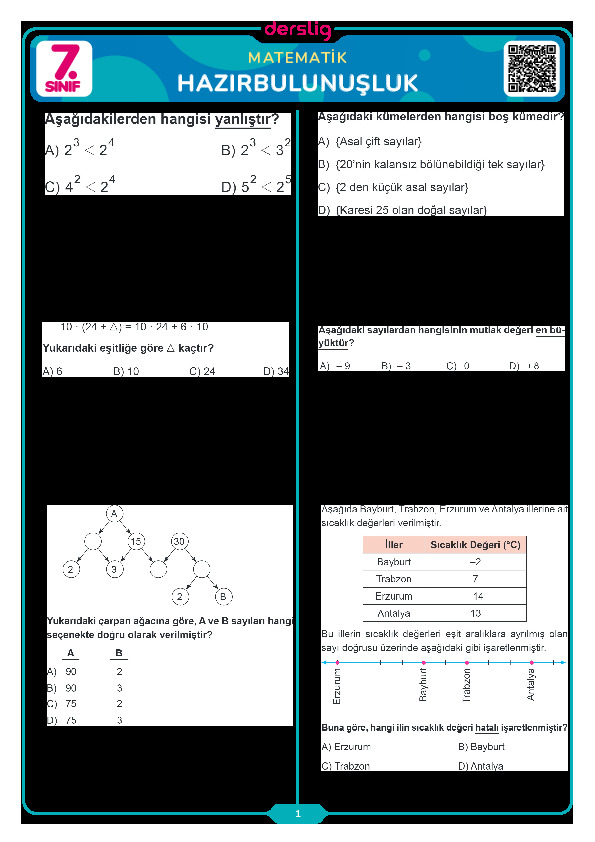 7. Sınıf Matematik Hazırbulunuşluk Sınavı
