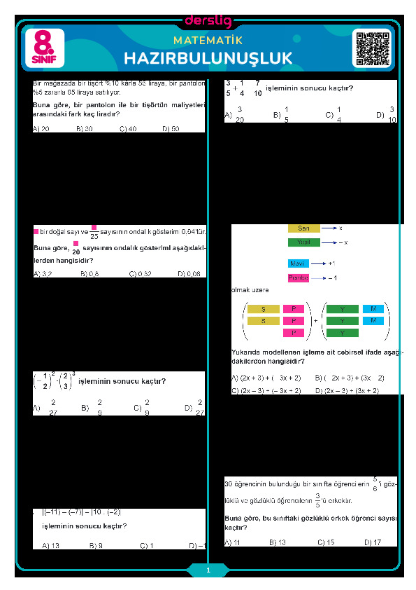 8. Sınıf Matematik Hazırbulunuşluk Sınavı