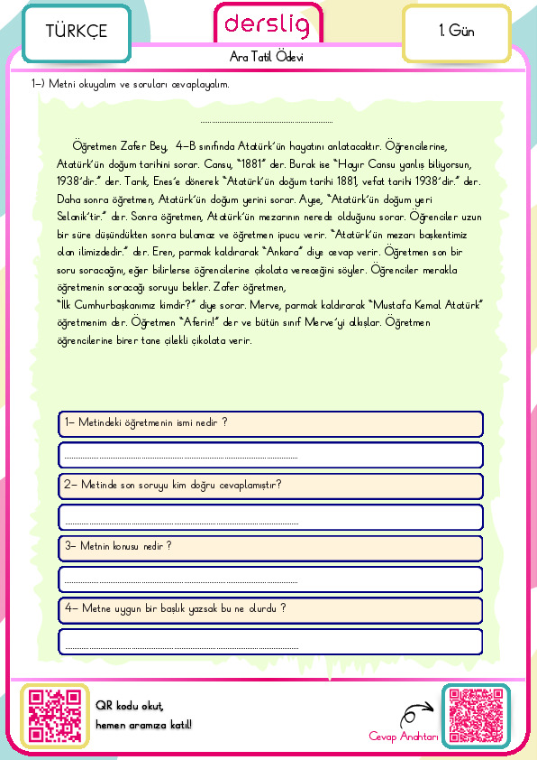 4. Sınıf Yarıyıl Tatil Ödevi