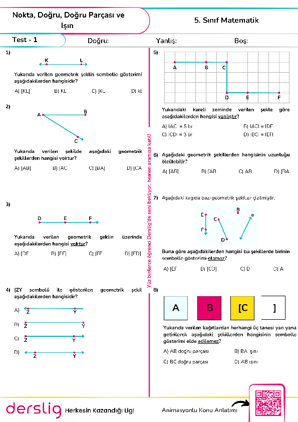 Test 6 - Eşit Uzunlukta Doğru Parçaları