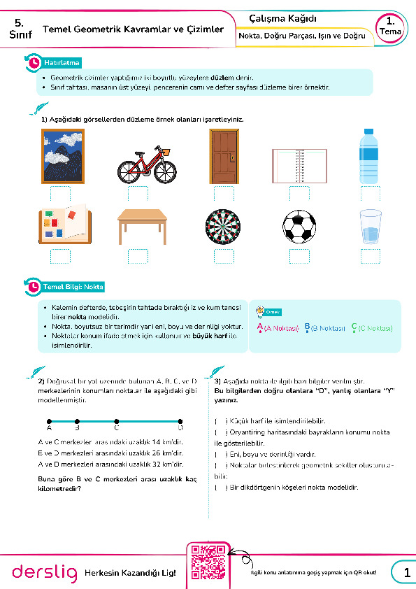 Test 1 - Nokta, Doğru, Doğru Parçası ve Işın