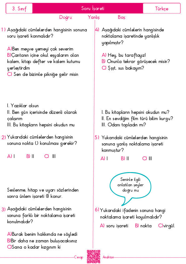 Cevap Anahtarı