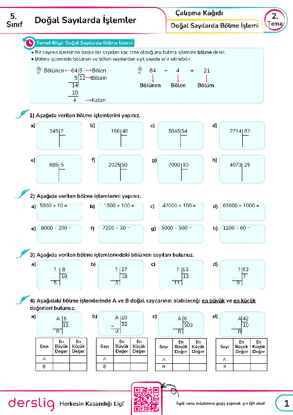 Test 15 - Bölme İşleminde Kalanı Yorumlama
