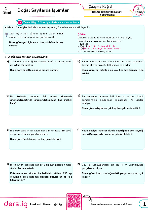 Test 15 - Bölme İşleminde Kalanı Yorumlama