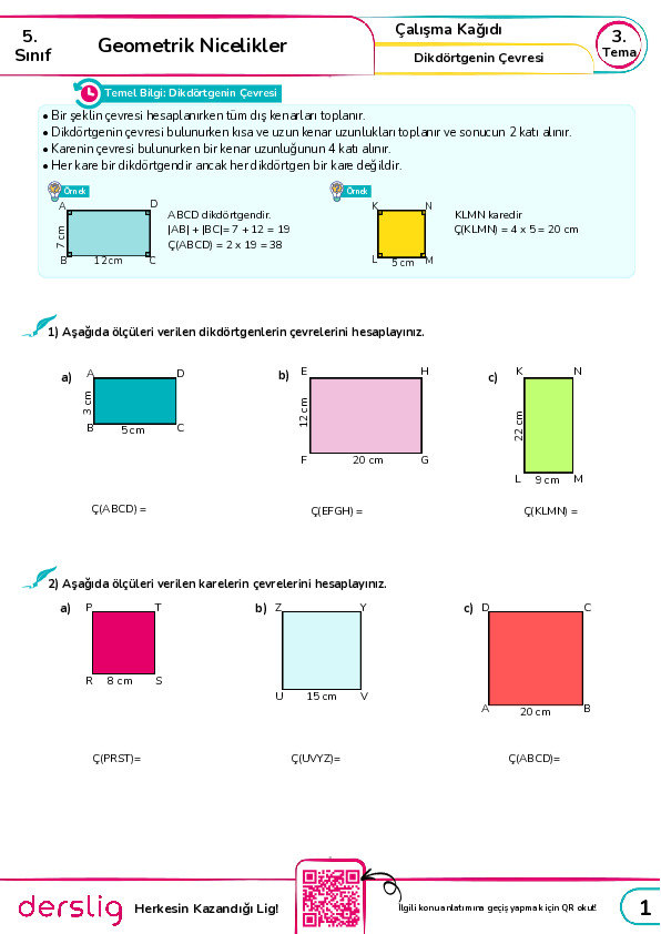 Test -1 Dikdörtgenin Çevresi