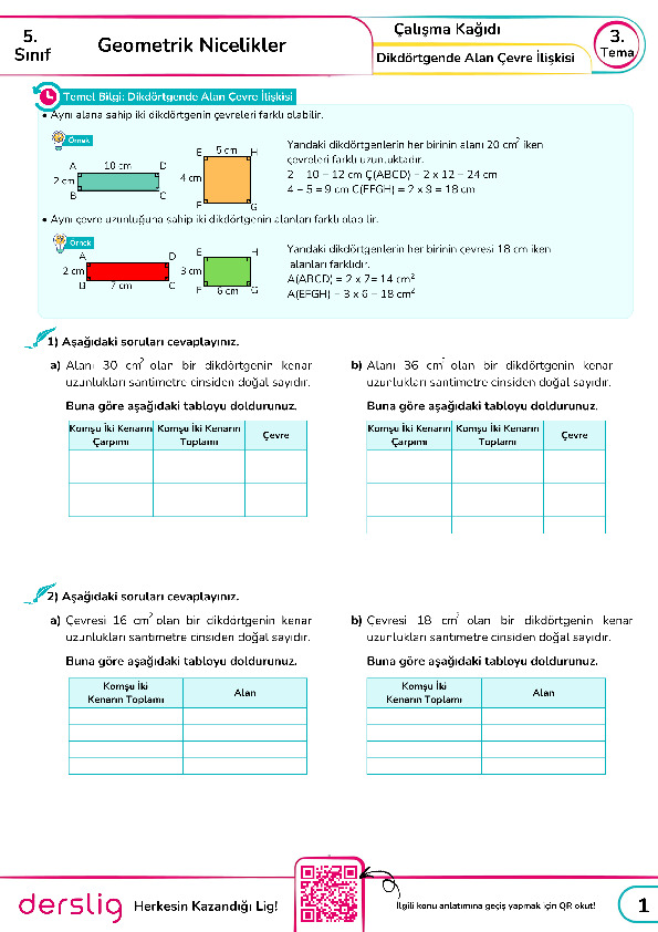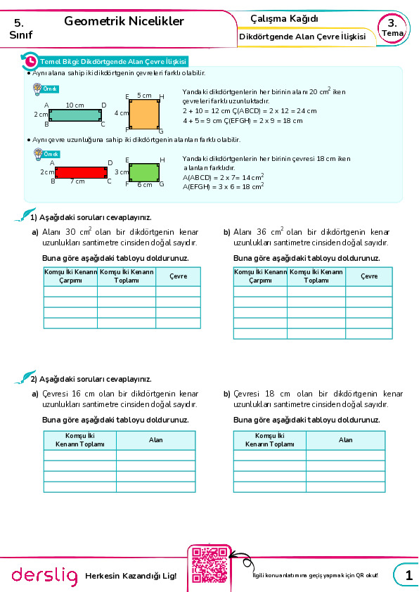 Test - 3 Dikdörtgende Çevre Alan İlişkisi