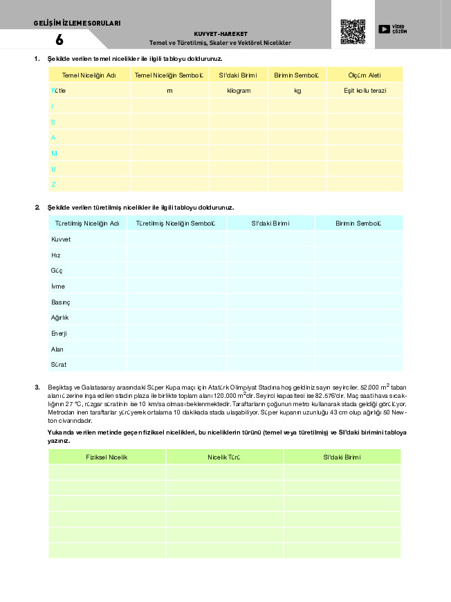 Doğadaki Temel Kuvvetler Gelişim İzleme Soruları - 8