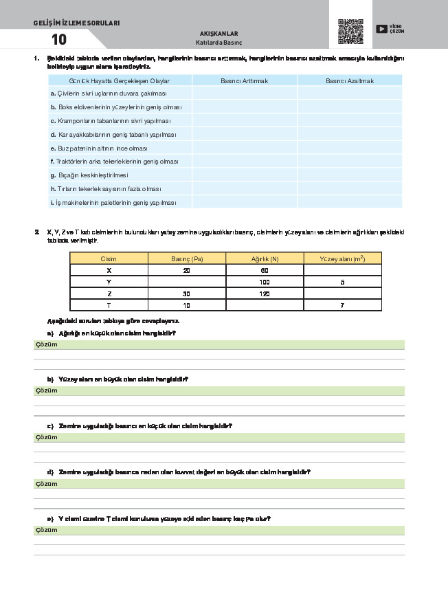 Sıvılarda Basınç Gelişim İzleme Soruları - 11