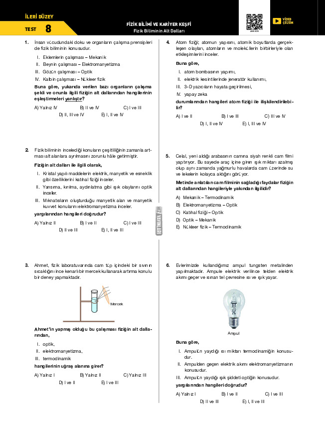 Fizik Bilimi ile İlgili Kariyer Keşfi Gelişim İzleme Sorular-5