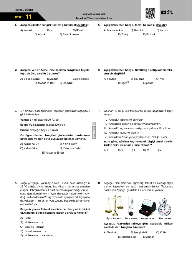 Test-12 Temel ve Türetilmiş Nicelikler
