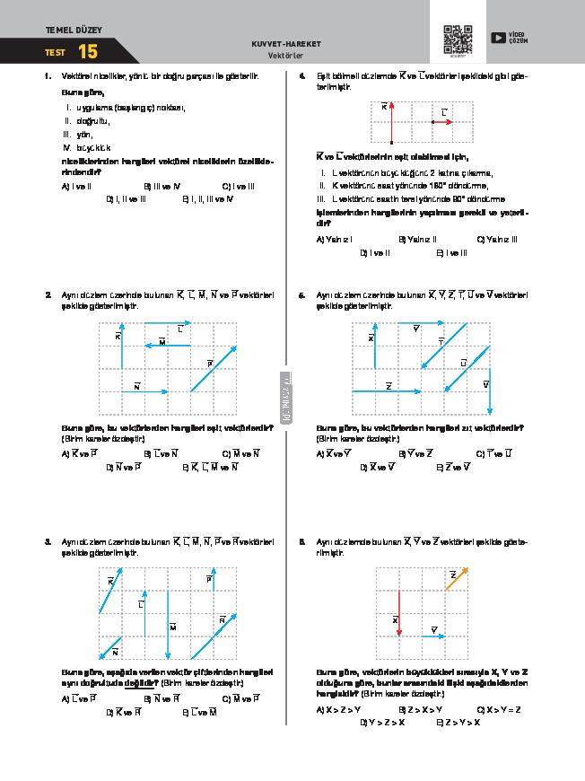 Temel ve Türetilmiş, Skaler ve Vektörel Nicelikler Gelişim İzleme Soruları - 6