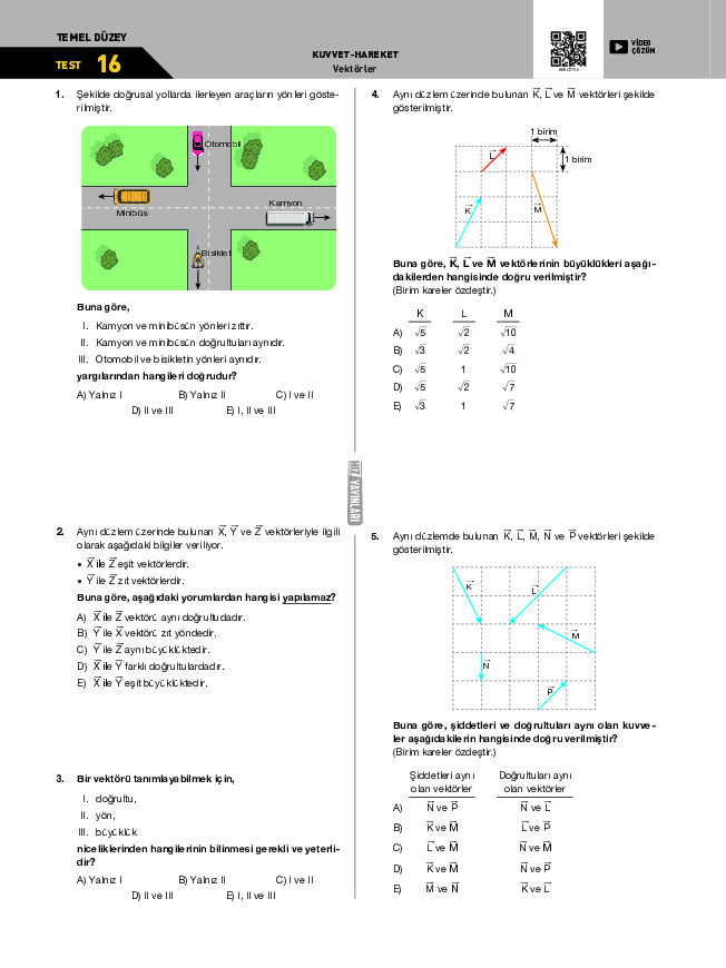 Test-14 Skaler ve Vektörel Nicelikler