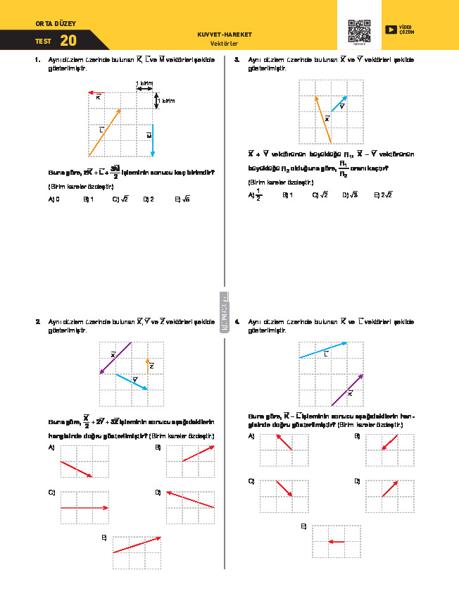 Temel ve Türetilmiş, Skaler ve Vektörel Nicelikler Gelişim İzleme Soruları - 6