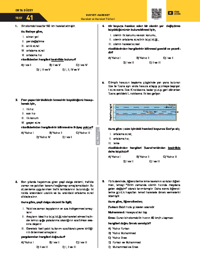 Hareket ve Hareket Türleri Gelişim İzleme Soruları - 9