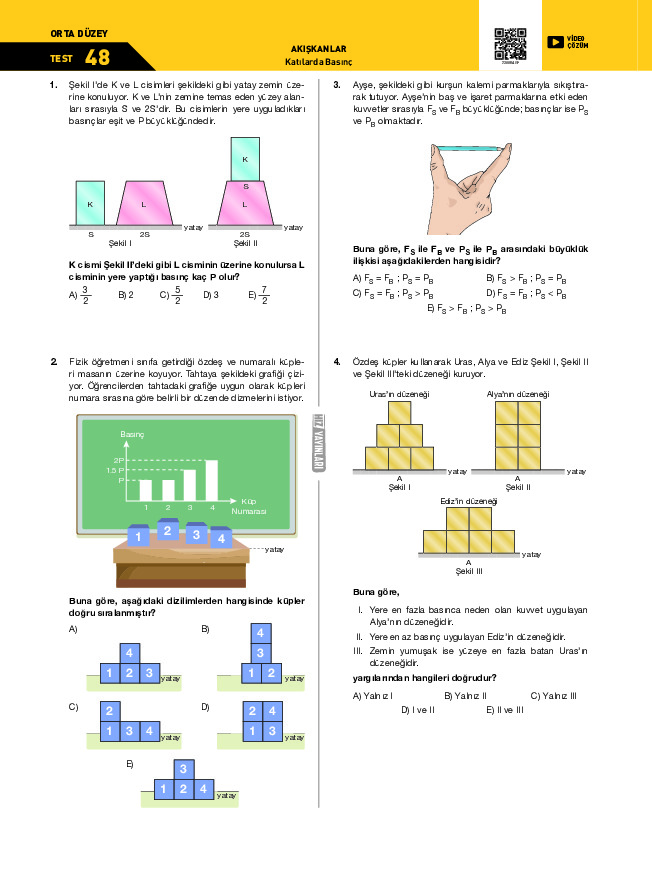 Sıvılarda Basınç Gelişim İzleme Soruları - 12