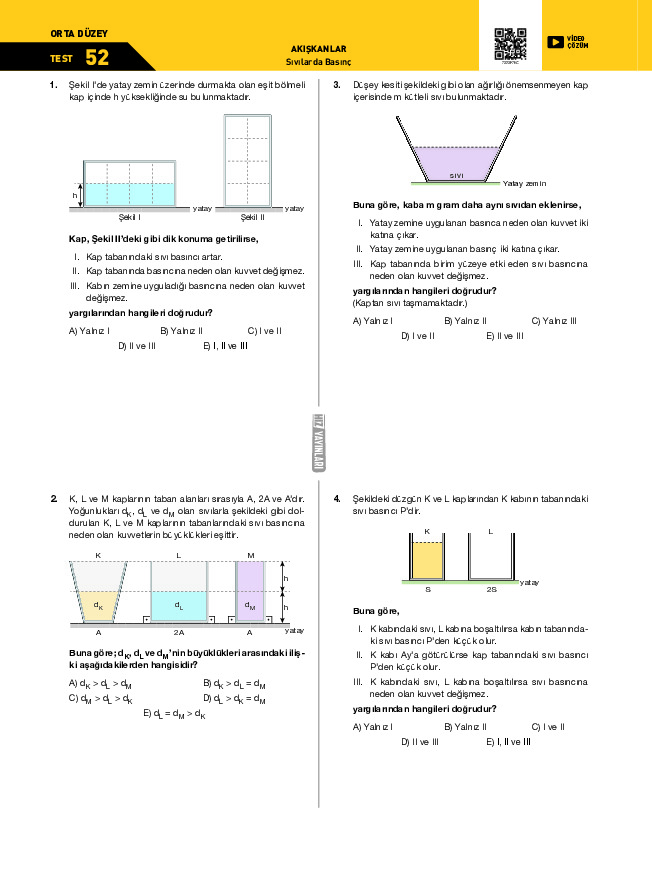 Sıvılarda Basınç Gelişim İzleme Soruları - 12