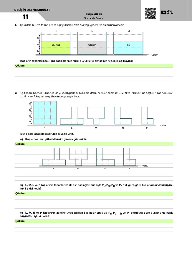 Sıvılarda Basınç Gelişim İzleme Soruları - 11