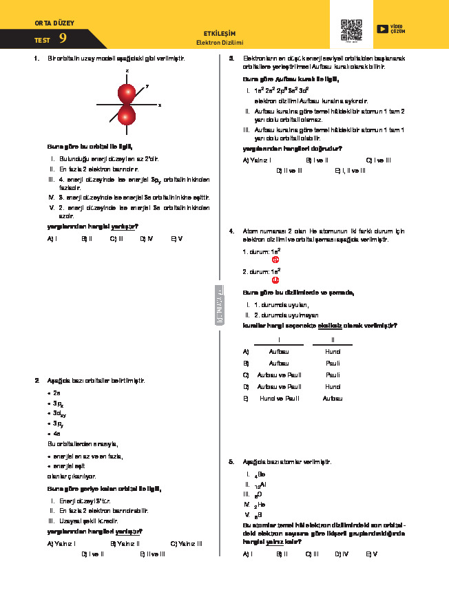 Gelişim İzleme Soruları-3 Elektron Dizilimi