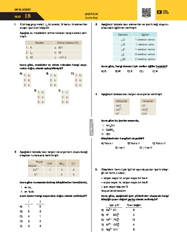 Gelişim İzleme Soruları-7 İyonik Bağ