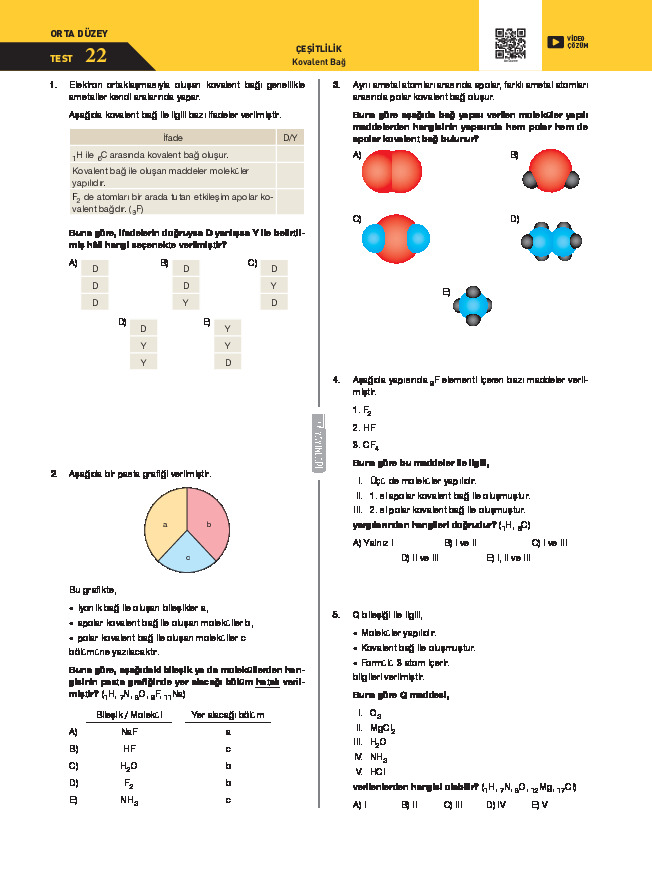 Gelişim İzleme Soruları-8 Kovalent Bağ