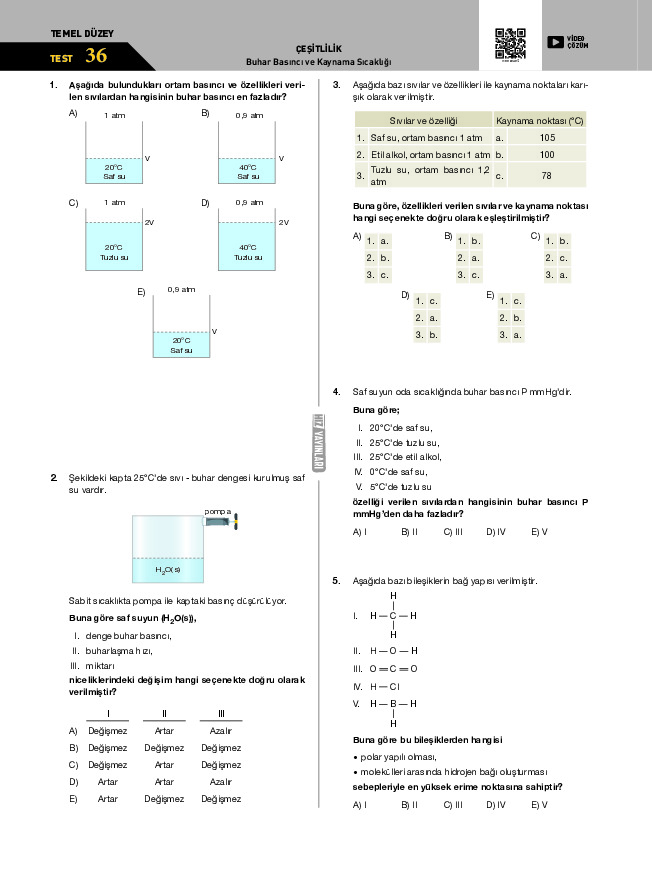 Test-37 Buhar Basıncı ve Kaynama Sıcaklığı
