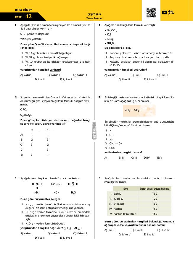 Gelişim İzleme Soruları-13 Buhar Basıncı ve Kaynama Sıcaklığı