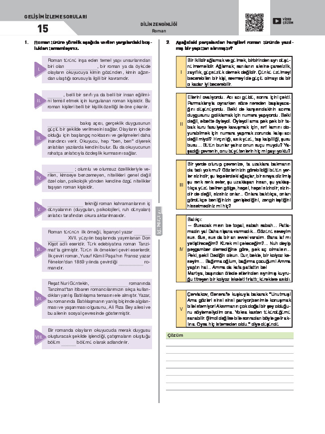 Gelişim İzleme Soruları-13 Gezi Yazısı/Anlatım Biçimleri ve Düşünceyi Geliştirme Yolları
