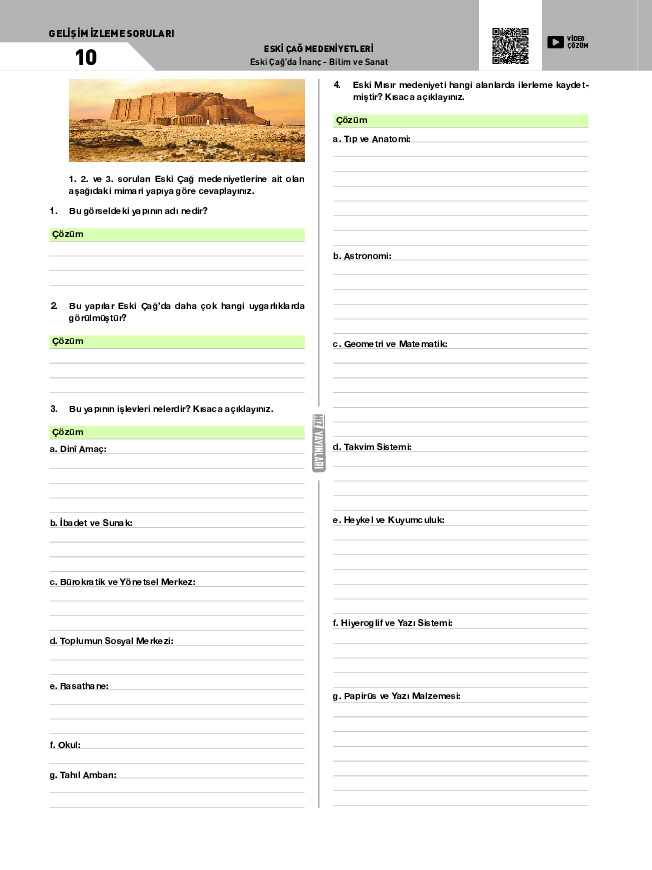 Gelişim İzleme Soruları-6 Mezopotamya - Mısır Uygarlıkları