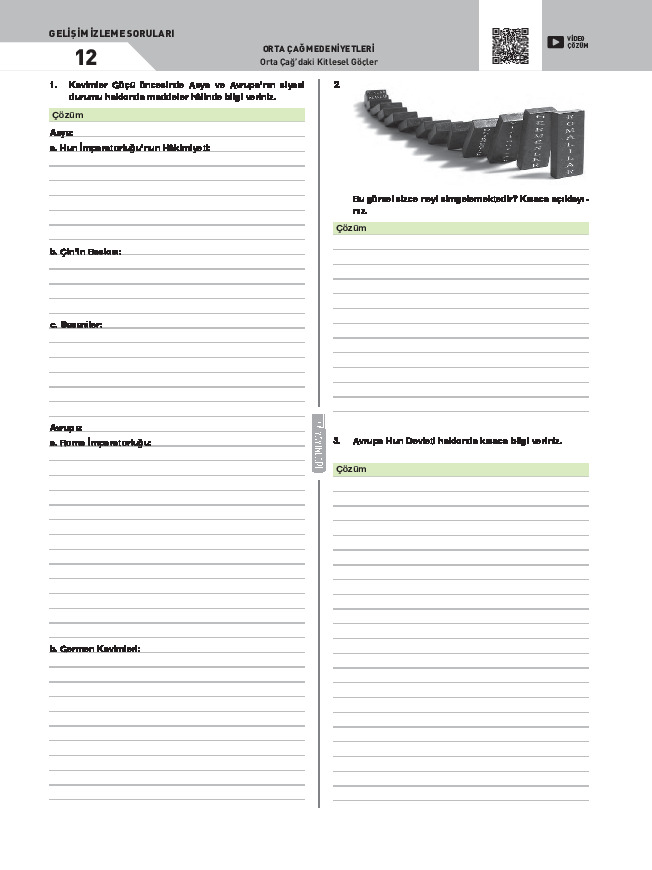 Gelişim İzleme Soruları-13 Orta Çağ’daki Siyasi ve Askerî Gelişmeler (Çin-Sasani-Doğu Roma)
