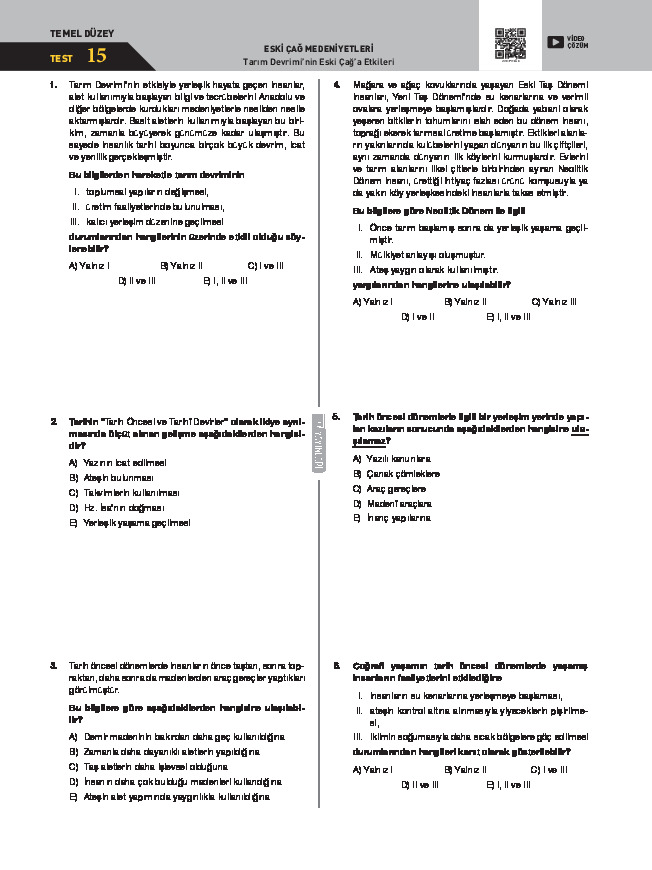 Test-16 Tarım Devrimi’nin Eski Çağ’a Etkileri