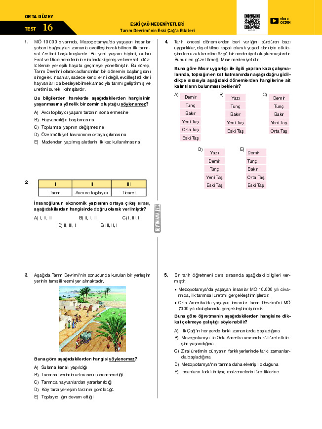 Test-15 Tarım Devrimi’nin Eski Çağ’a Etkileri