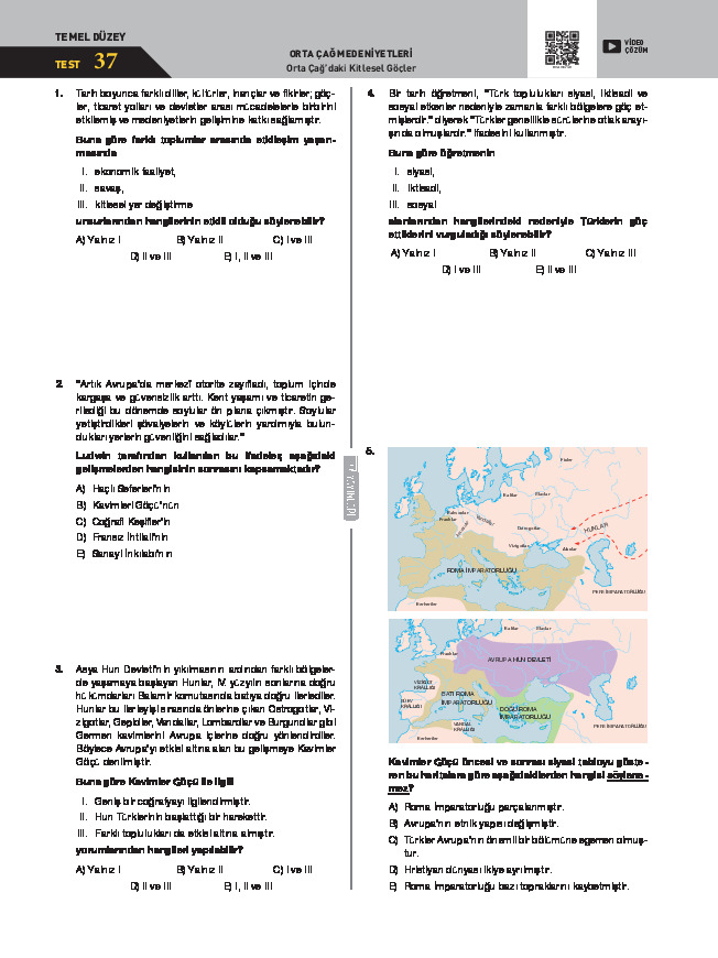 Test-39 Orta Çağ’daki Kitlesel Göçler