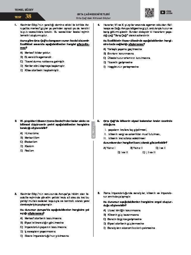 Test-39 Orta Çağ’daki Kitlesel Göçler