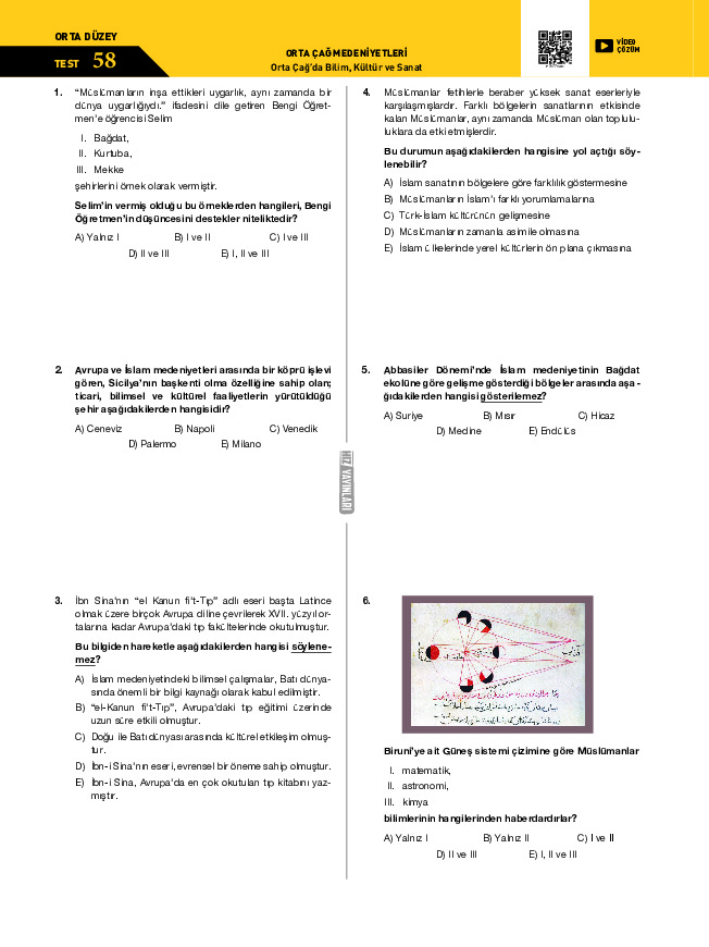Test-57 Orta Çağ’da Bilim, Kültür ve Sanat