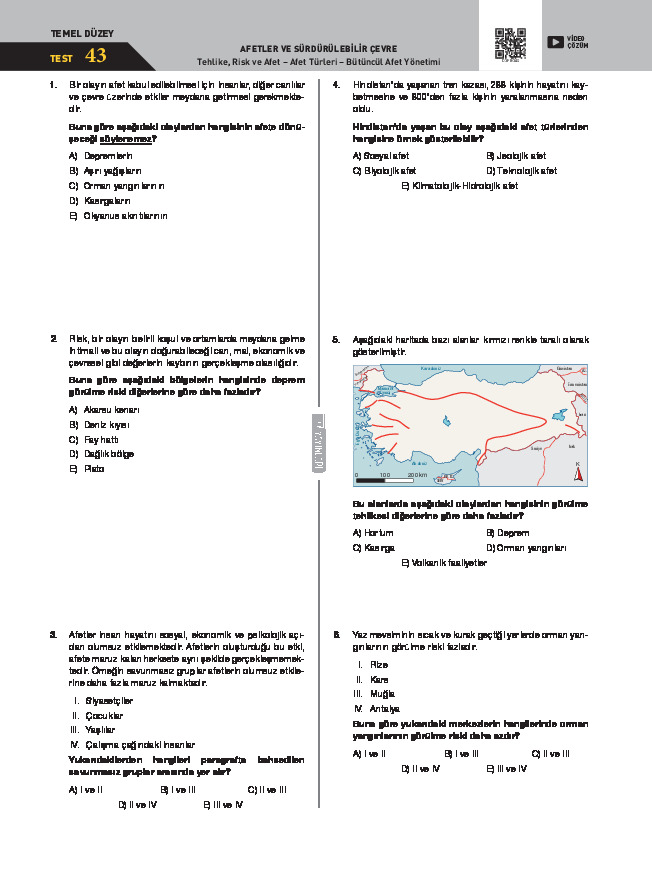 Test-44 Tehlike, Risk ve Afet – Afet Türleri – Bütüncül Afet Yönetimi