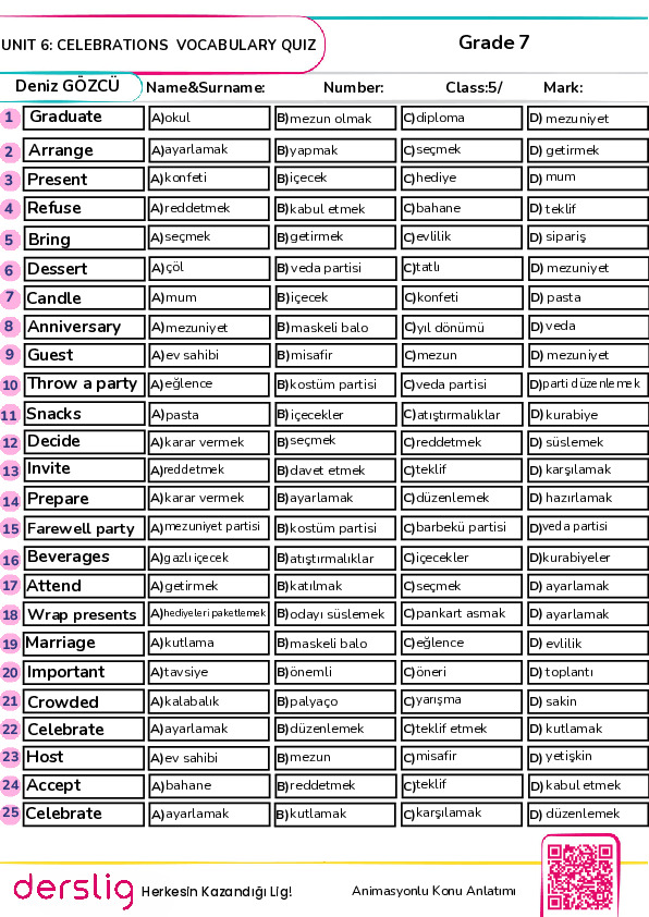 Vocabulary – Cevap