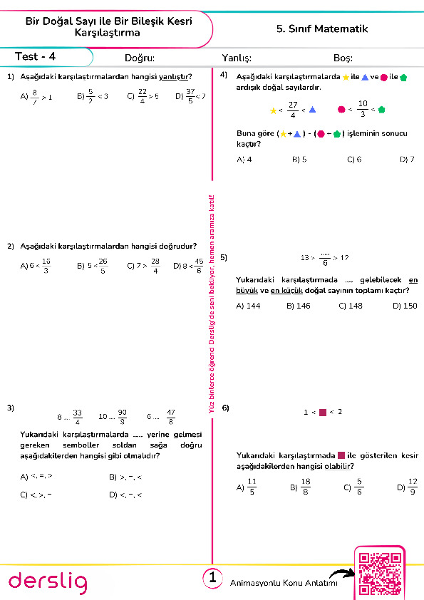 5.Bir Doğal Sayı İle Bir Bileşik Kesri Karşılaştırma