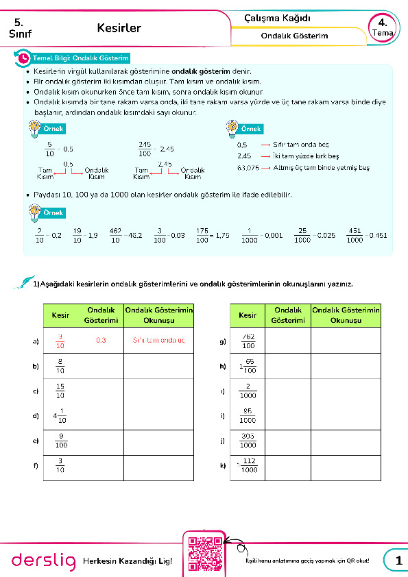 9.Kesir, Ondalık Gösterim ve Yüzde İlişkisi