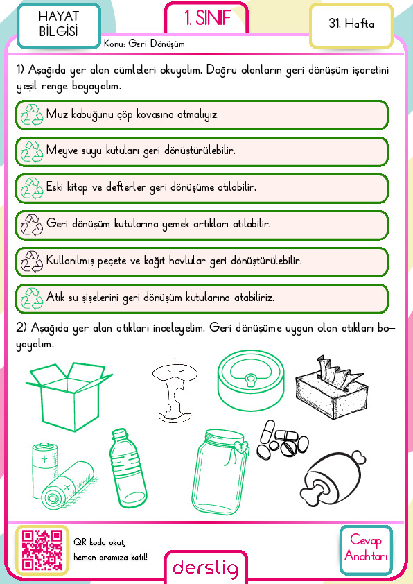 1. Sınıf Geri Dönüşüm Cevap Anahtarı