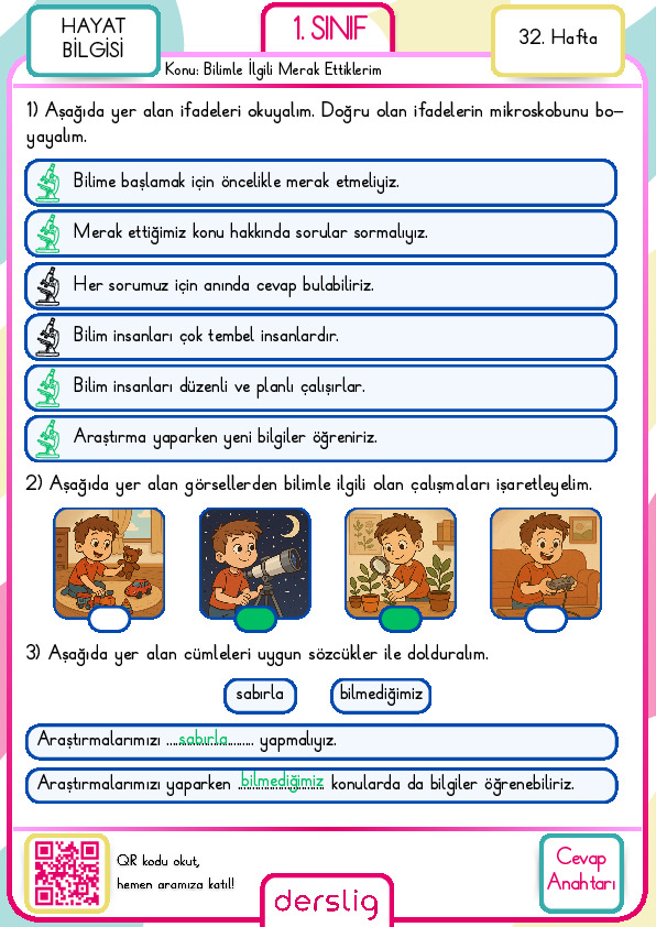 1. sınıf 2. hafta ödevi cevap anahtarı