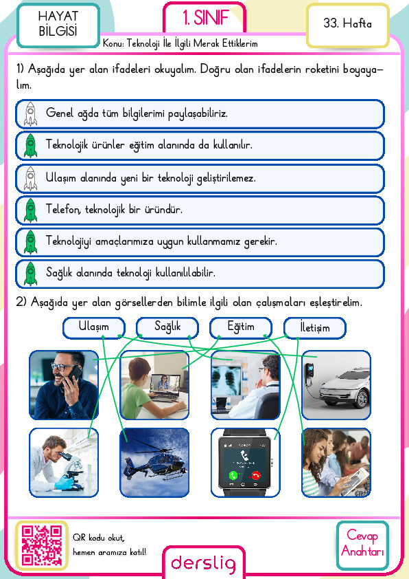1. sınıf 2. hafta ödevi cevap anahtarı