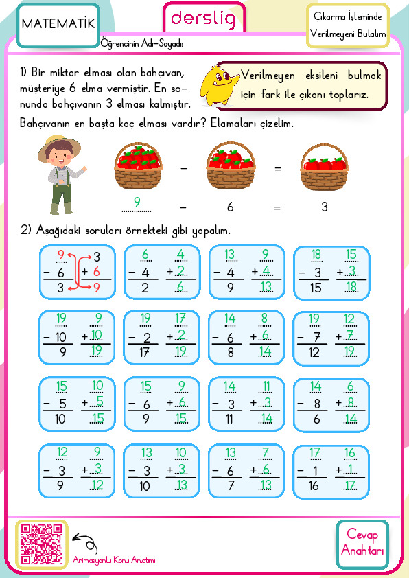 2. Sınıf Çıkarma İşlemi Yapalım Cevap Anahtarı
