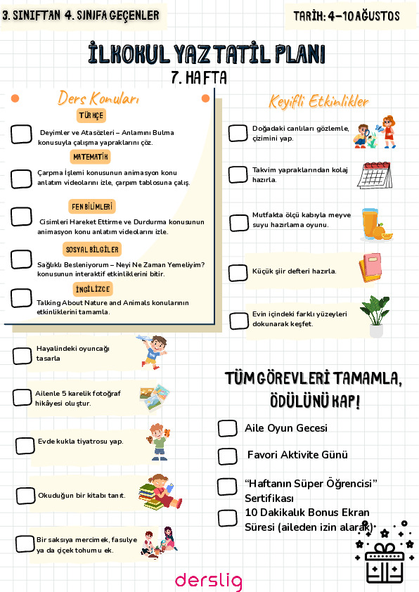 Yaz Tatil Planı 7. Hafta-4. Sınıf