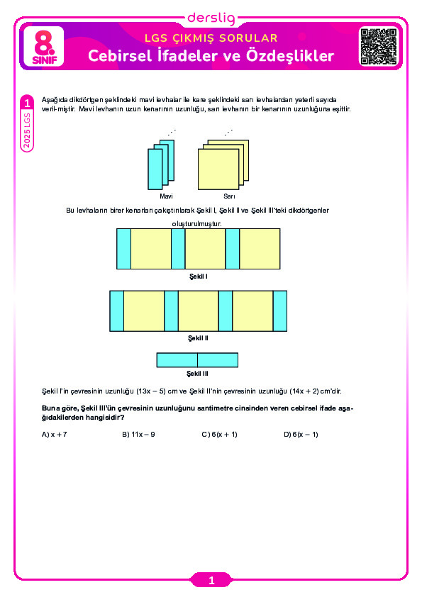 Cebirsel İfadeleri Farklı Biçimlerde Yazma ve Cebirsel İfadelerle Çarpma Test 17