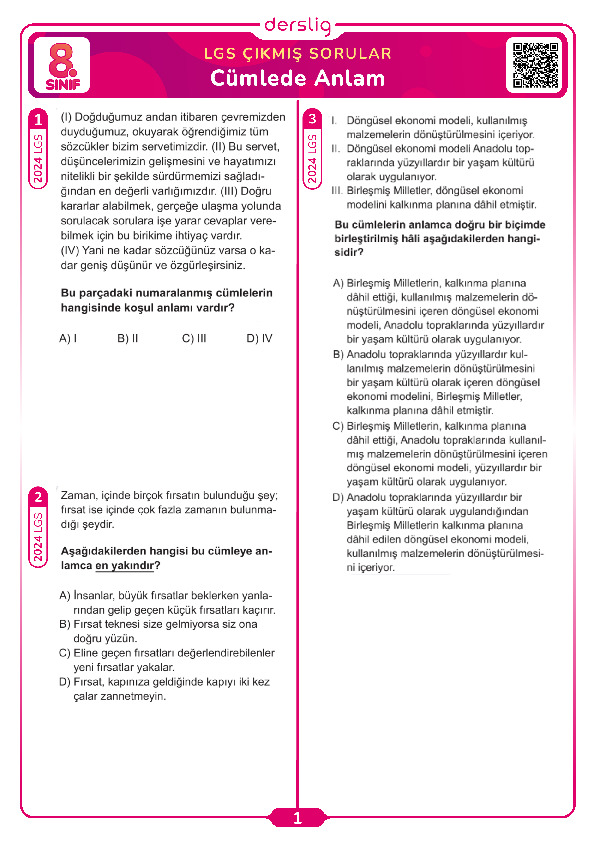 Cümlede Anlam Test 1 (Şuayip Hatip)